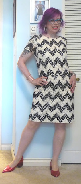 ...and here you go! Keeping the outfit neutral - ha, yes, a crazy zig-zag dress is neutral in my wardrobe! - to show them off.- Dress - Talbots, thrifted; last worn here in May with pops of orange