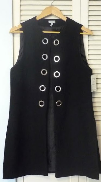 I kept taking the actual vest (instead of the above invisible one) off and putting it back on, hoping it would look better. It didn't. I tried a cardigan over it. Then the vest again. It looked horrendous on me; made my waist look thick, hit my legs at a bad spot, did nothing for me (and it didn't have pockets! Outrageous!). What was I thinking? Into the donate pile it went.