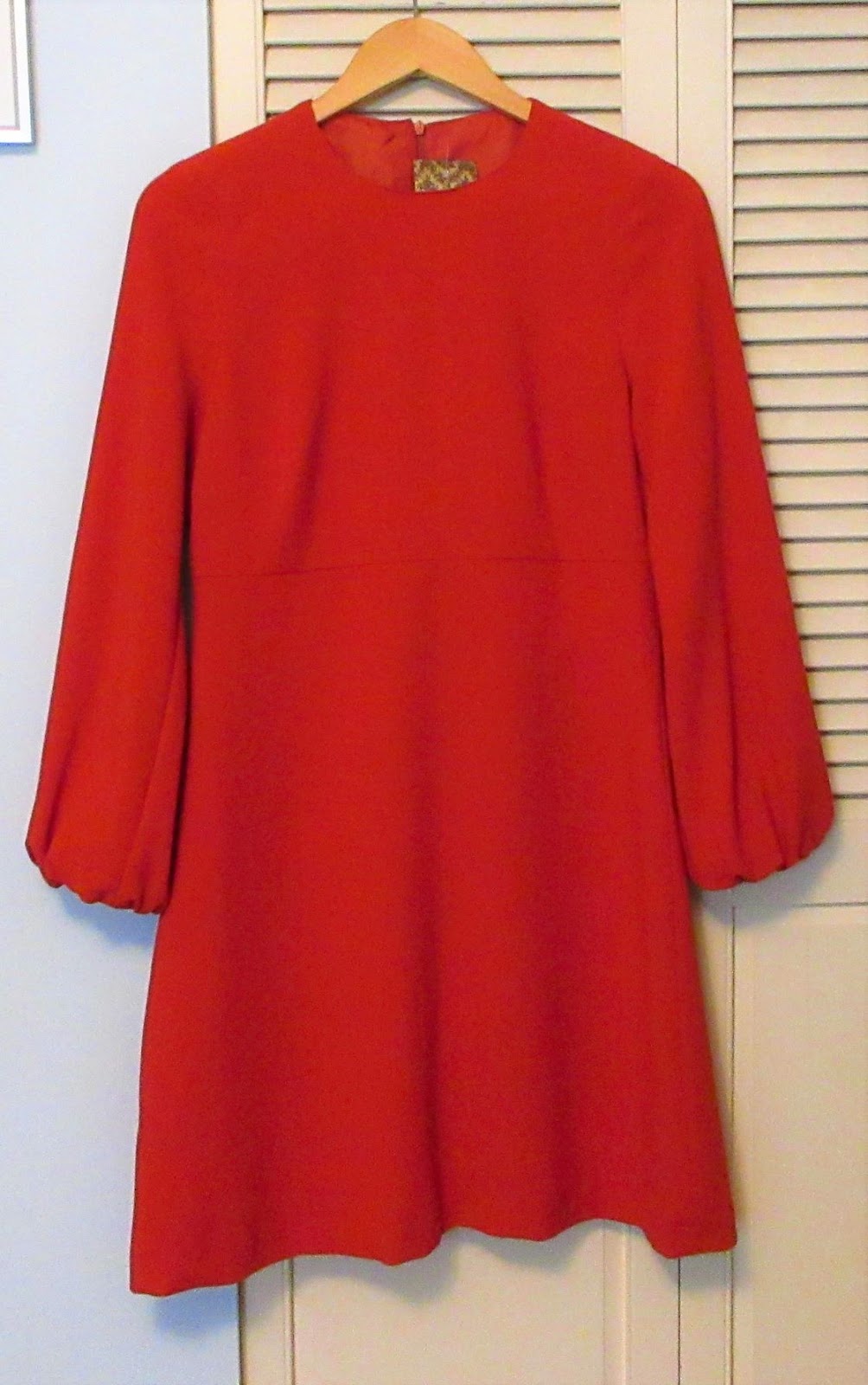The fabric is crepe weave, could have a touch of wool in it? but I think it's mostly polyester. It's fully lined, in either nylon, polyester or acetate. It was $29.99, which seems a bit high, but when a dress fits really well, you have to go for it! This will be lovely in the fall, and it's now stashed away until then.