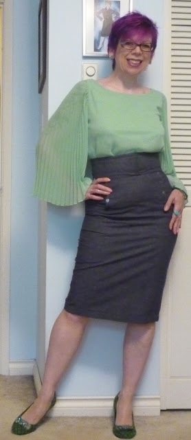 This outfit is from January 2019. I didn't keep the blouse - it was incredibly difficult to get into (and yes, I did use the side zip!). The skirt is part of my vintage Valentino suit.