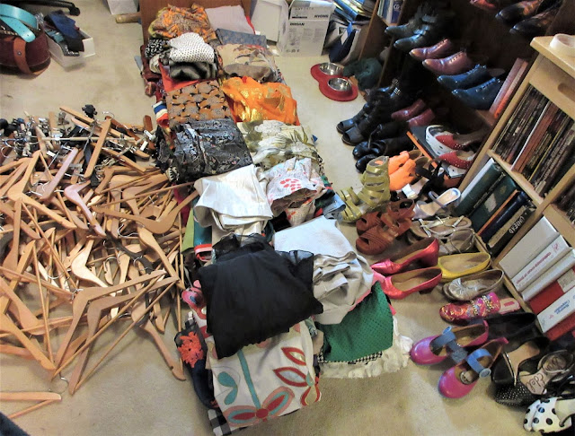 After I thinned out the existing clothes, and unpacked my fall/winter stash, I had to thin further so that I'd have enough hangers. I will not let myself buy more hangers!