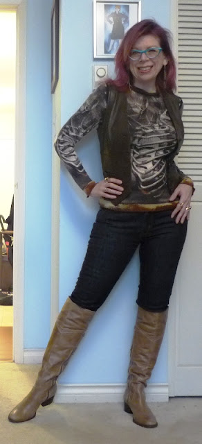 Same boots, and let's put the vest over a denim jacket! That's the same belt I wore just a few days ago - I've had it a long time.