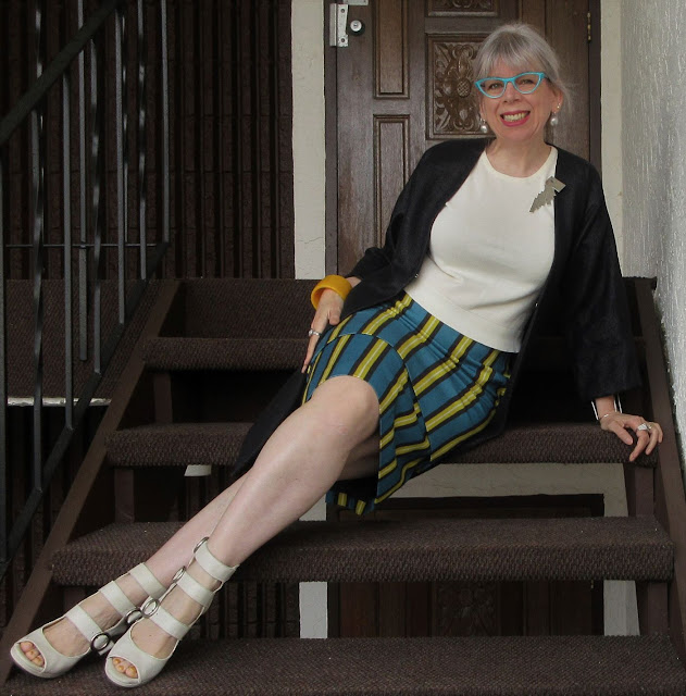 I also wore my little cotton petit-pants under it for thigh separation. I like this dress way more just worn on its own vs. with a top layered under it as I did its first outing, so as I'd suspected then, this will be a "depths of summer" dress. I'll be wearing a few of those in the near future.