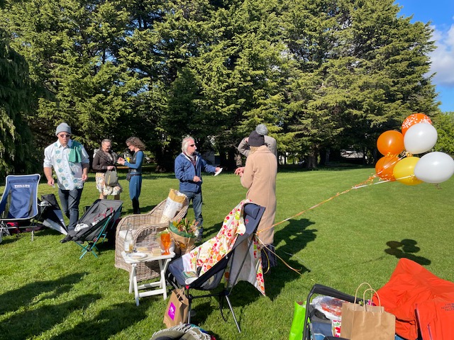 That a gorgeous dress on you. The high boots are fantastic too. Happy birthday to your friends. Lovely to see you all having fun.