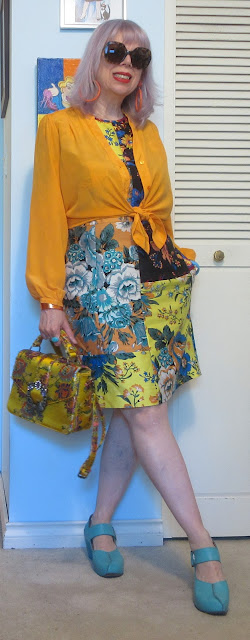 The neon orange blouse is silk and is good sunblock, but the star is this new-to-me dress thrifted just a week ago.
