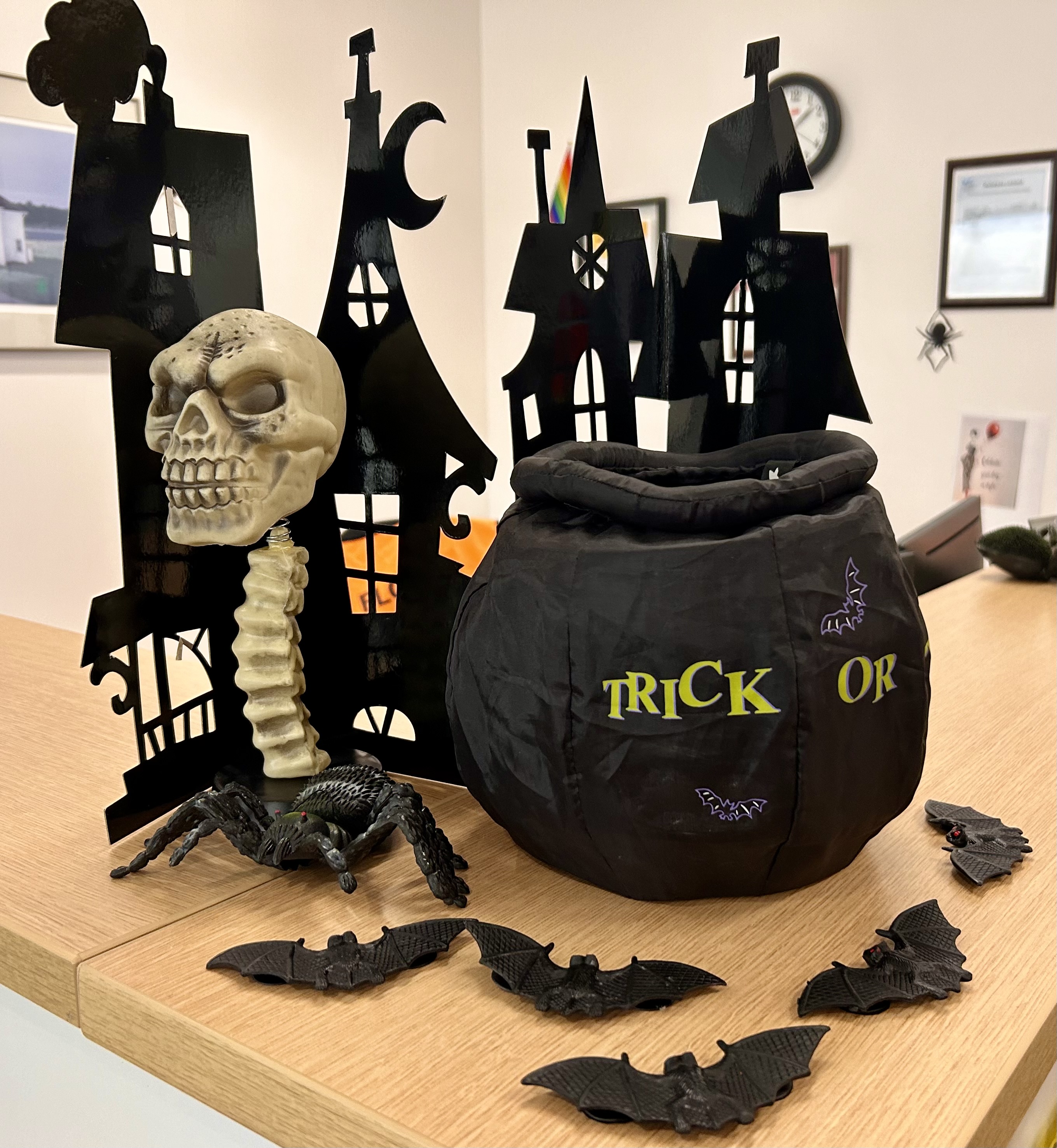 Deletethat is a cute but also sophisticated Halloween decor for the workplace!