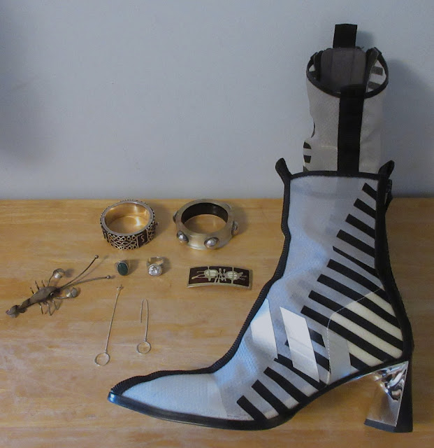 I found myself wanting a pair of tall silver boots. Um...John Fluevog...request over here! But I do love these funky boots still.